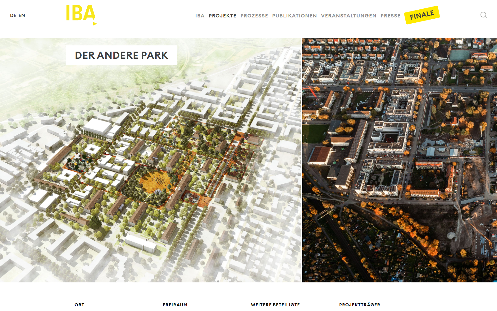 Die Website dokumentiert die einzelnen Projekte sowie deren Entstehungsprozess. Desweiteren informiert sie über begleitende Veranstaltungen sowie sämtliche Publikationen, die über den Zeitraum durch die IBA herausgegeben werden.