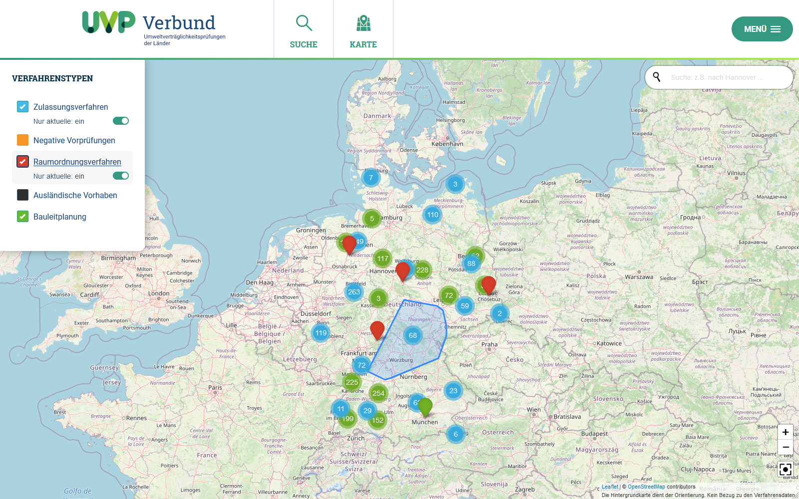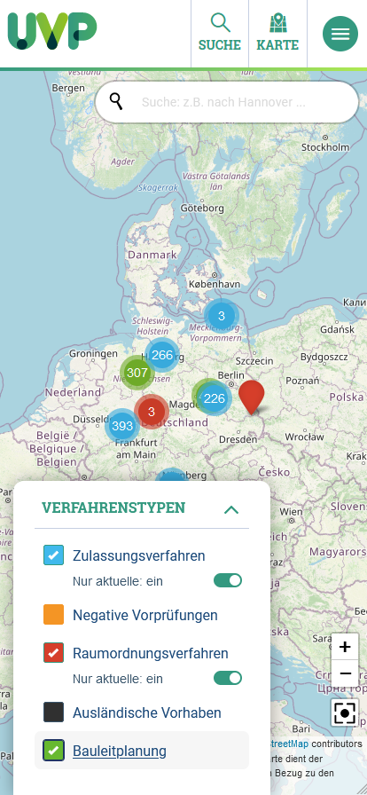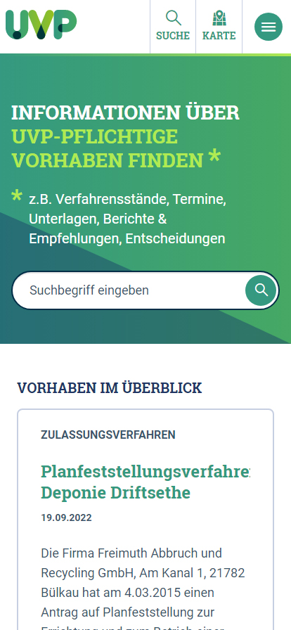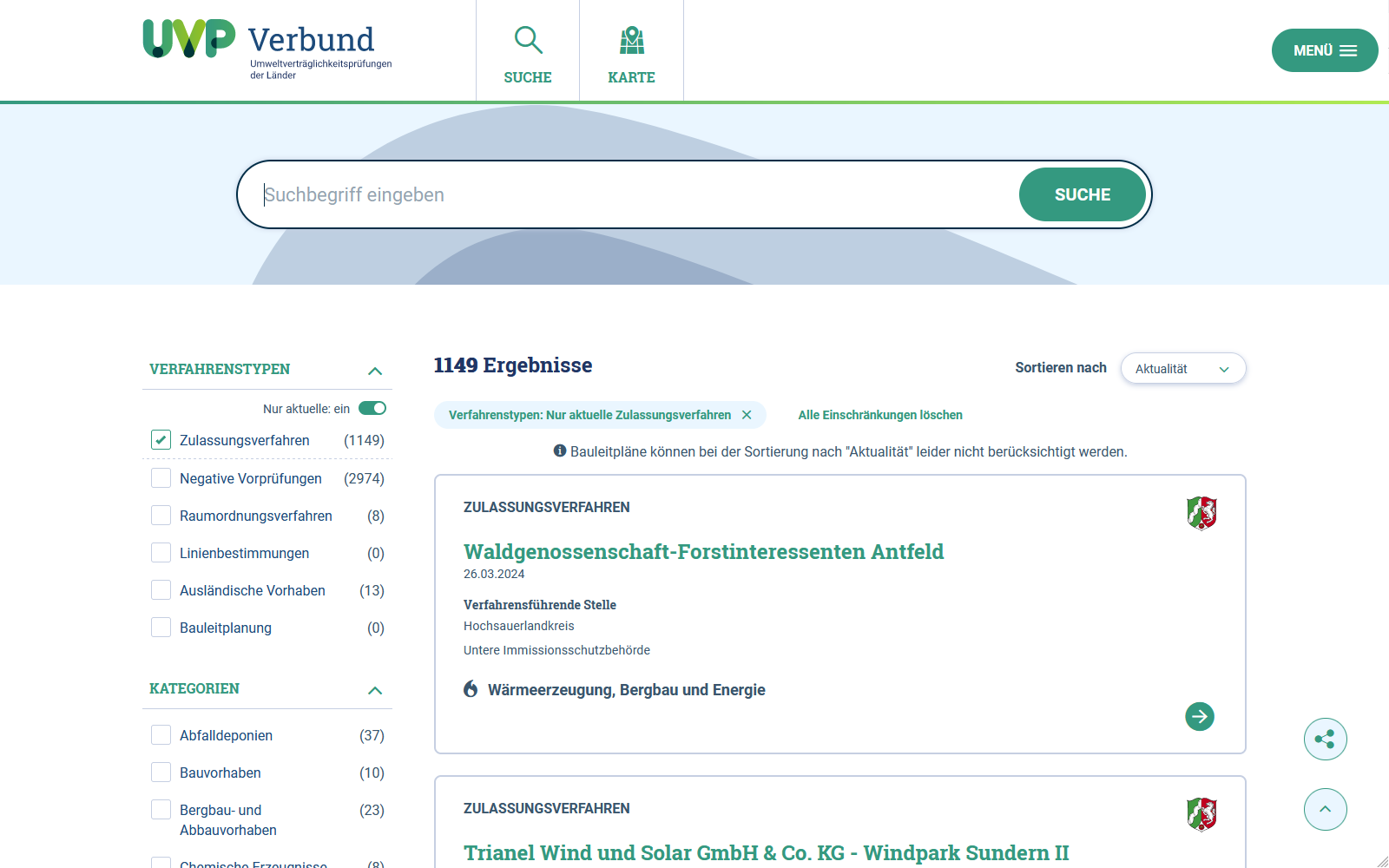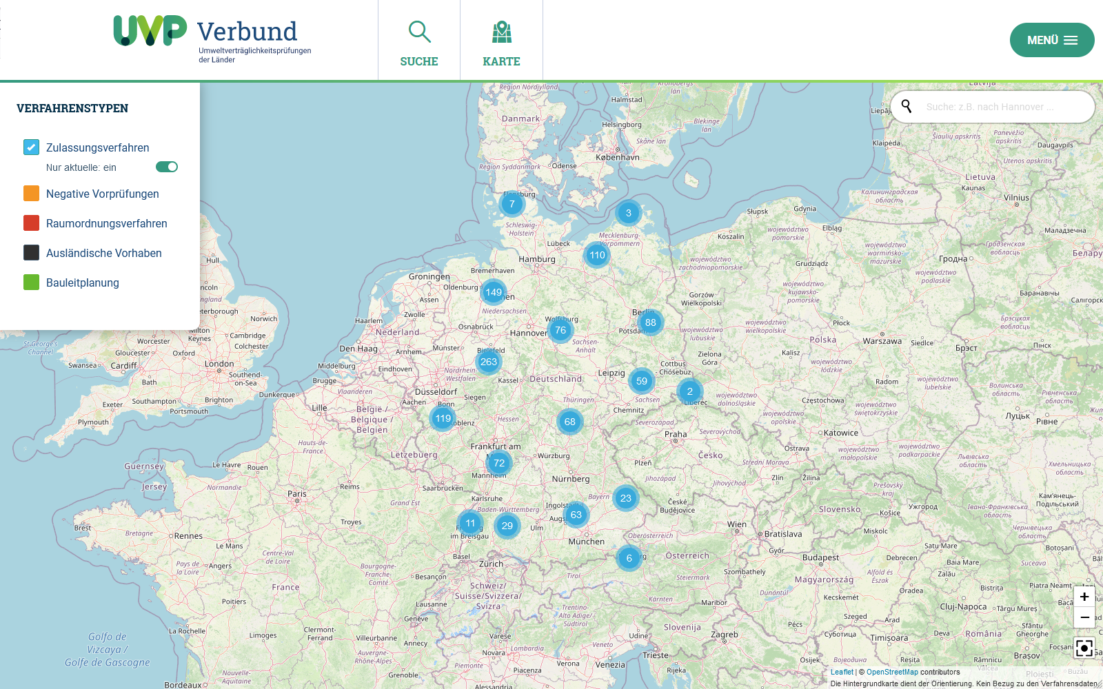 Das UVP-Portal der Länder Baden-Württemberg, Bayern, Brandenburg, Berlin, Bremen, Hessen, Hamburg, Mecklenburg-Vorpommern, Nordrhein-Westfalen, Rheinland-Pfalz, Schleswig-Holstein, Saarland, Sachsen-Anhalt, Sachsen, und Thüringen.